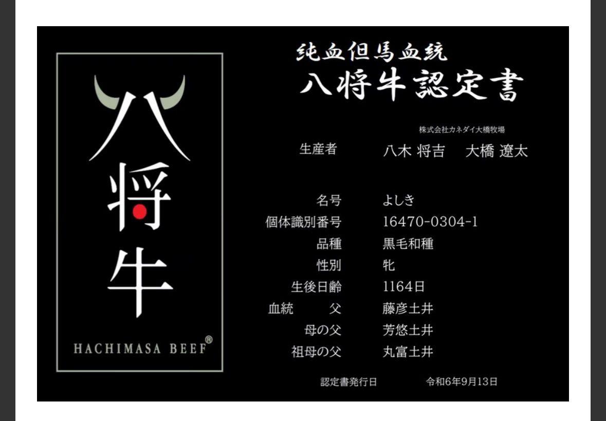 また「大橋牧場」では、EXILE SHOKICHIさんと純血但馬血統『八将牛』を育てております。